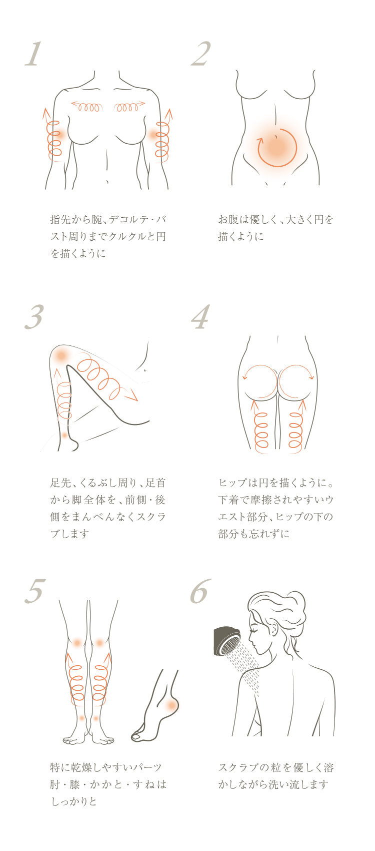 濡れた肌に適量をやさしくマッサージするようにのばし洗い流します。