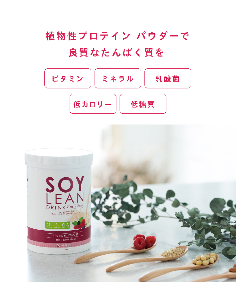ソイリーンはビタミン・ミネラル・乳酸菌を豊富に配合し、甘味料も自然由来のこだわり。