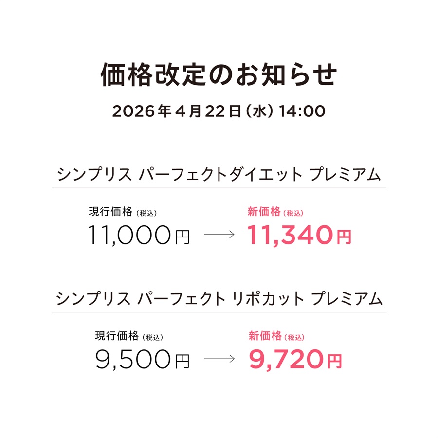 シンプリス パーフェクトダイエット プレミアム 44.1g(30袋) 税込11,000円 2箱