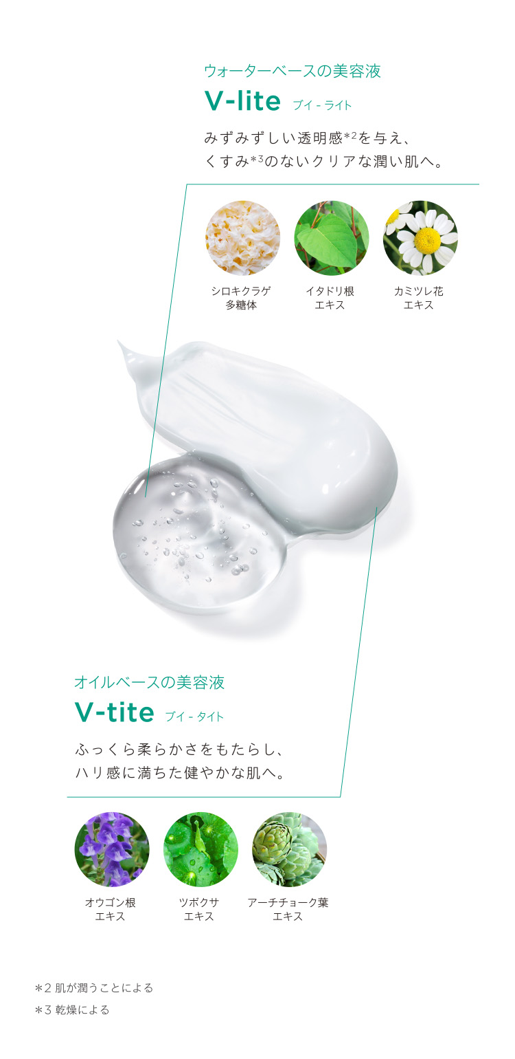浸透性の高い水溶性の美容液と、じんわり働く油溶性の美容液。
