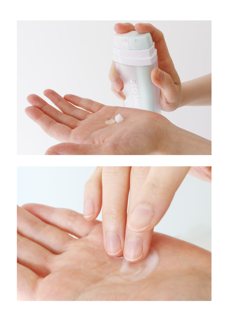 シャワー後の清潔な肌に、定量(各2プッシュずつ)を手に取り、手のひらでよく混ぜて、気になる箇所に塗布してください。塗付後、すぐに衣服を着ていただけます。