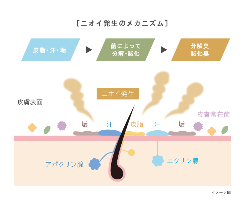 また肌を守ってくれる皮膚常在菌(表皮ブドウ球菌)まで奪いニオイトラブルに。