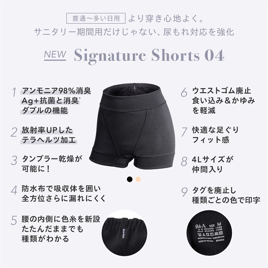 Be-Aは生理用品ではありません。日本において生理用品は、肌に当てる部分が白い不織布等で作られている使い捨て紙ナプキンを基準に、医薬部外品として指定されています。 ベア シグネチャー ショーツは、快適なサニタリーライフをサポートする吸水ショーツです。