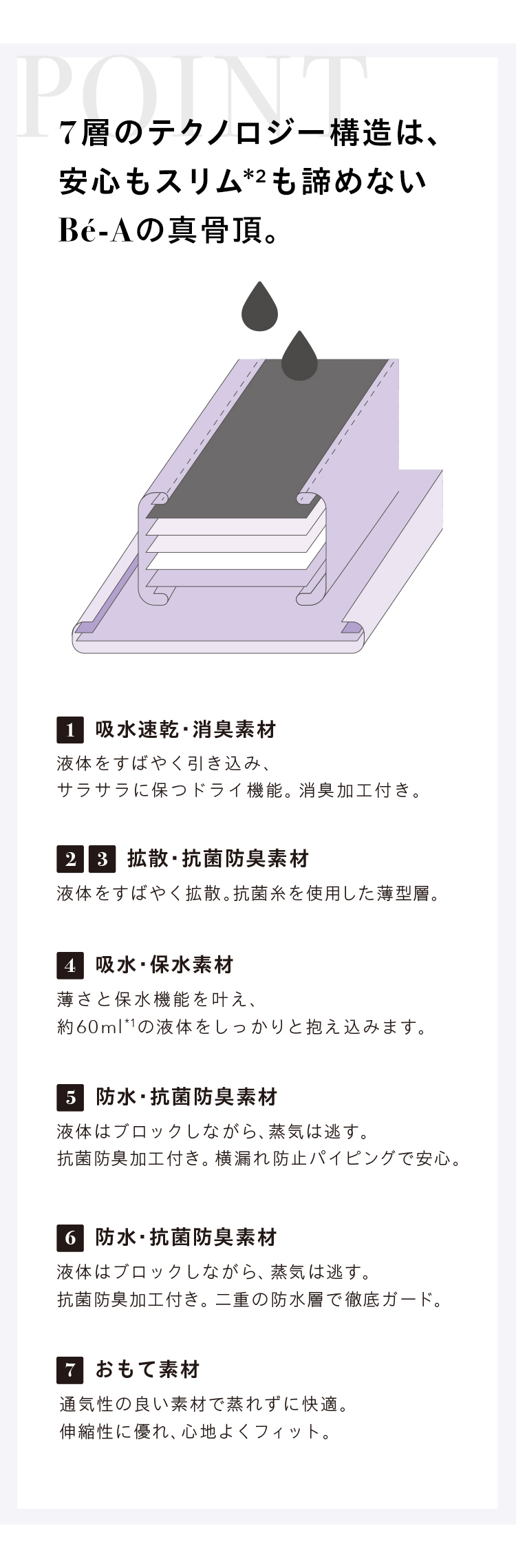 *3 消臭は吸収体1層目に使用。抗菌防臭は 2・3・5・6層目に使用。