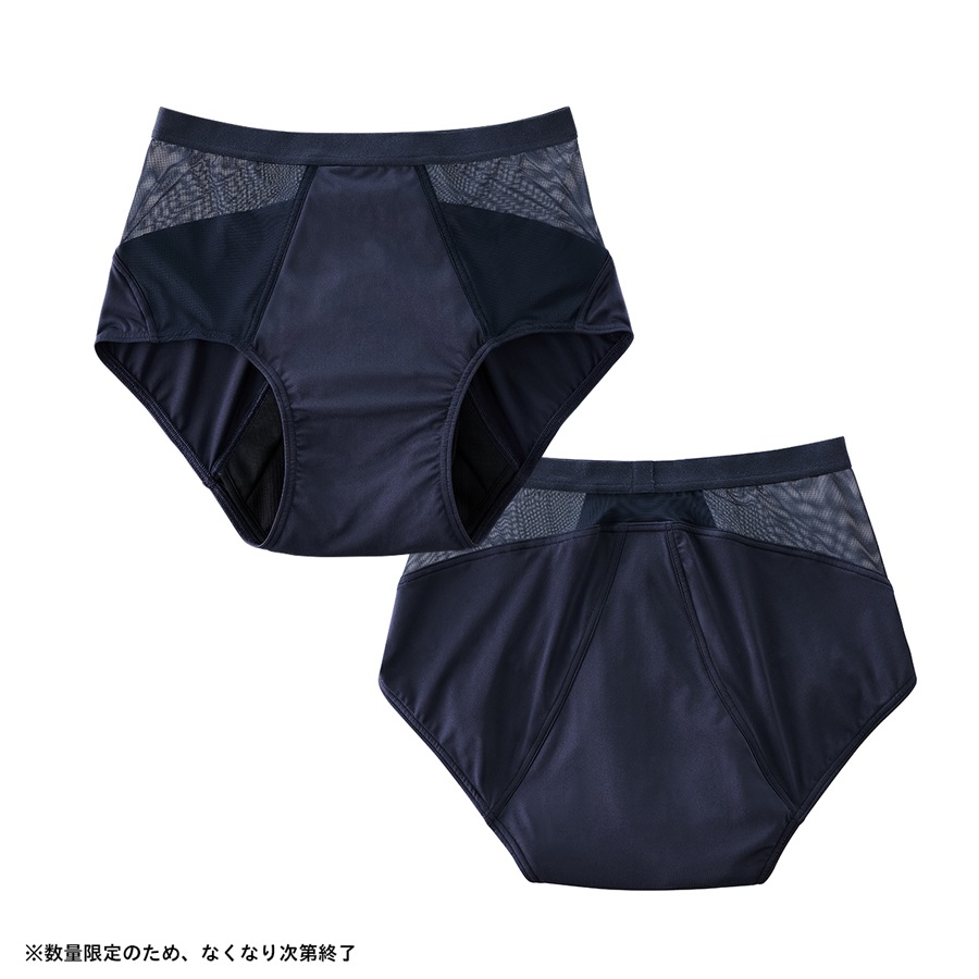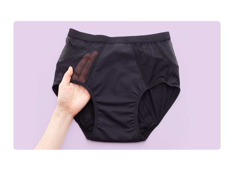 体調や状況によって量の多さが心配な時は、クロッチ(股)部分に施したウィングポケットを使って他のサニタリーアイテムを併用いただくことも可能です。