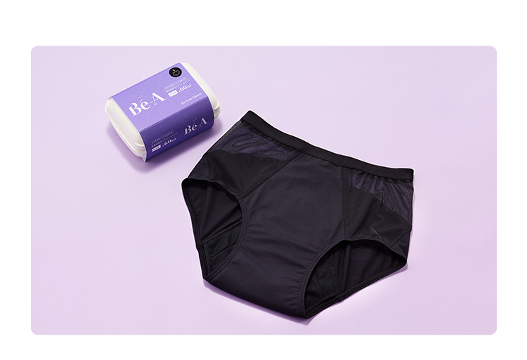 Be-Aは生理用品ではありません。日本において生理用品は、肌に当てる部分が白い不織布等で作られている使い捨て紙ナプキンを基準に、医薬部外品として指定されています。 ベアのショーツは、快適なサニタリーライフをサポートする吸水ショーツです。