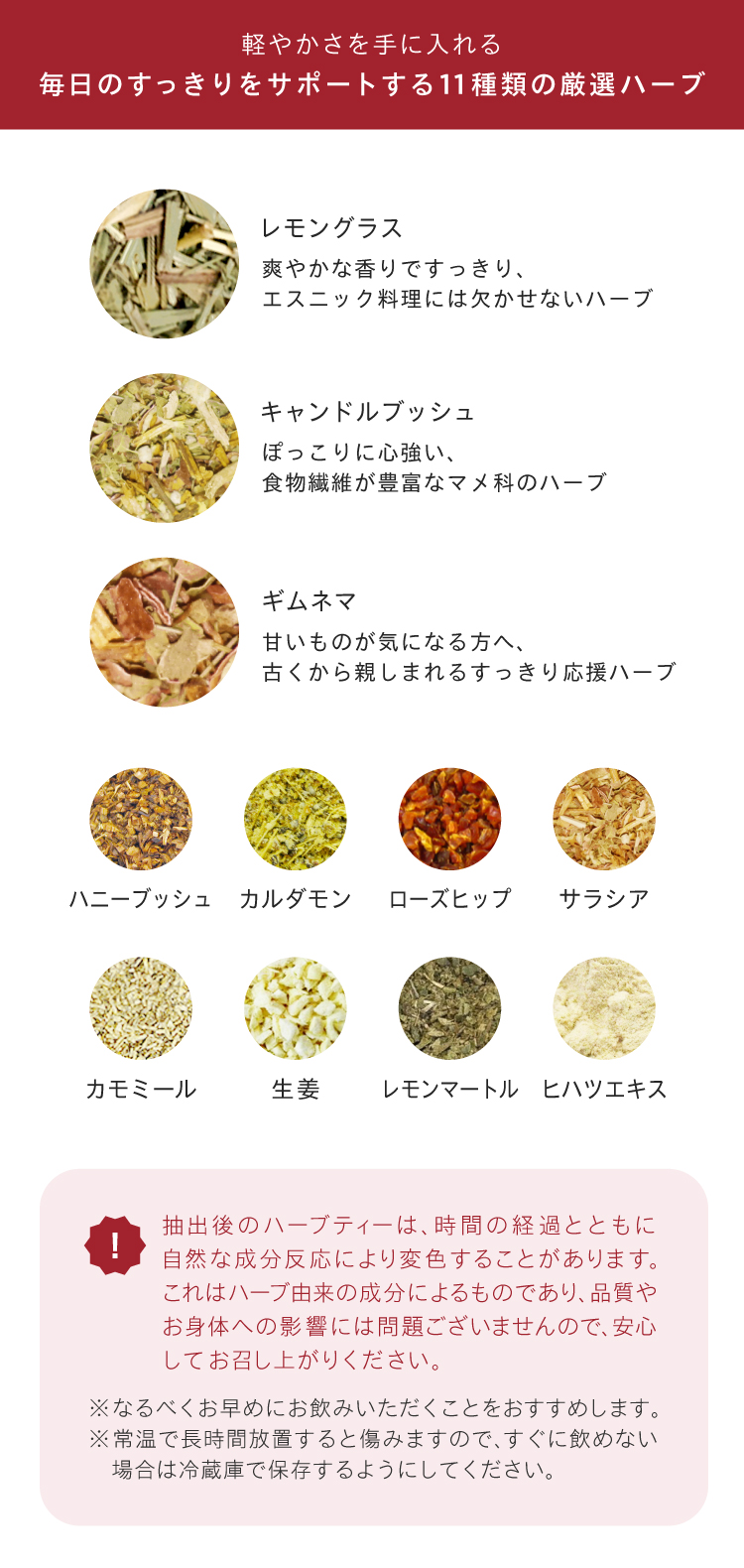 HOME INNER CARE この商品に関する問い合わせ 11種類のハーブをブレンドした、ほのかな甘みとくせのない深い味わいのハーブティー。「レモングラス」が清々しく爽やかに香り、「キャンドルブッシュ」が溜め込み・重さにアプローチ。ティーバッグタイプでいつでも手軽にすっきりキレイへ。ノンカフェインで時間を選ばずお飲みいただけます。 ※軽減税率対象商品 毎日をすっきり、内側から軽やかに シンプリス ダイエットティー <ハーブティー> 25.0g(2.5g×10包) ★★★★★ レビューを見る(件) 税込¥1,700円 通常購入する ツイート お気に入りの登録人数:2人 この商品をお気に入りに追加する 注文数: 会員ランクについて お支払い方法について 返品交換について 定期便について 11種類のハーブをブレンドした、ほのかな甘みとくせのない深い味わいのハーブティー。「レモングラス」が清々しく爽やかに香り、「キャンドルブッシュ」が溜め込み・重さにアプローチ。ティーバッグタイプでいつでも手軽にすっきりキレイへ。ノンカフェインで時間を選ばずお飲みいただけます。 ※軽減税率対象商品 お気に入り一覧 表示名1 表示名2 表示名3 在庫状況 在庫数量:0 カートに入れる 商品説明 レビュー メディア掲載 毎日をすっきり、内側から軽やかに 「レモングラス」「キャンドルブッシュ」など11種類のハーブをブレンドした、 ほのかな甘みとくせのない深い味わいのハーブティー。ノンカフェインで時間を選ばずお飲みいただけます。 ご使用方法 ティーカップに1包を入れ、200〜300mlのお湯を注ぎ、2〜3分置いてからお召し上がりください。アイスでお飲みになる場合は、上記の方法で抽出したあと、ティーバッグを取り出してから冷やしていただく、もしくは氷を入れたグラスにそのまま注いでいただき、お召し上がりください。 【使用上の注意】 高温、多湿を避け、冷暗所で保存し、開封後はお早めにお召し上がりください。食品アレルギーの方は、原材料をよくご確認ください。万一体質に合わない場合は、お召し上がりをお控えください。病気治療中の方や、妊娠中の方は事前に医師へご相談ください。 【保存方法】 直射日光・高温多湿を避けて冷暗所で保存してください。 全成分 レモングラス(タイ)、キャンドルブッシュ、ハニーブッシュ、ギムネマ、カルダモン、ローズヒップ、サラシア、カモミール、生姜、レモンマートル、ヒハツエキス 以下のメディアで紹介されています 商品レビュー※いただいたレビューは個人の感想であり、効果を保証するものではありません。 (レビュー0件) レビューを書く レビューを書くためにはログインが必要です。 チェックした商品 HOME INNER CARE カートに商品を追加しました シンプリス ダイエットティー 数量 1 税込¥1,700円 お買い物を続ける 決済に進む