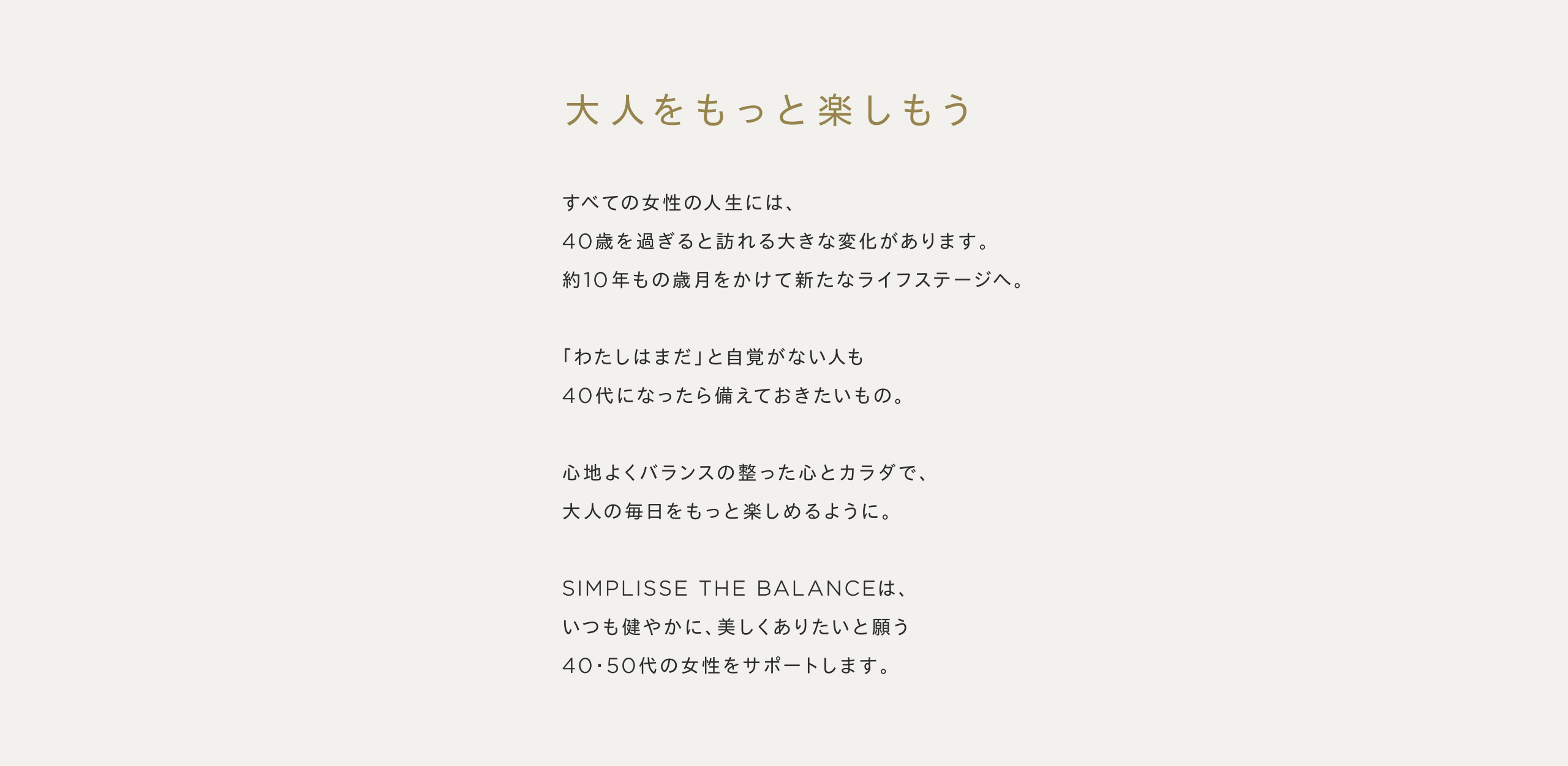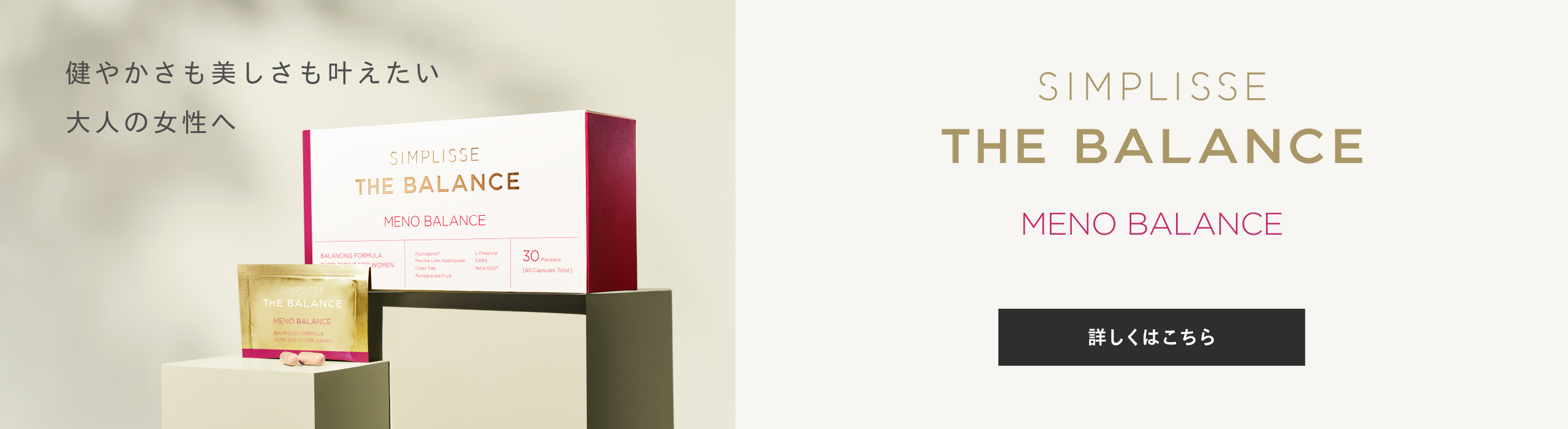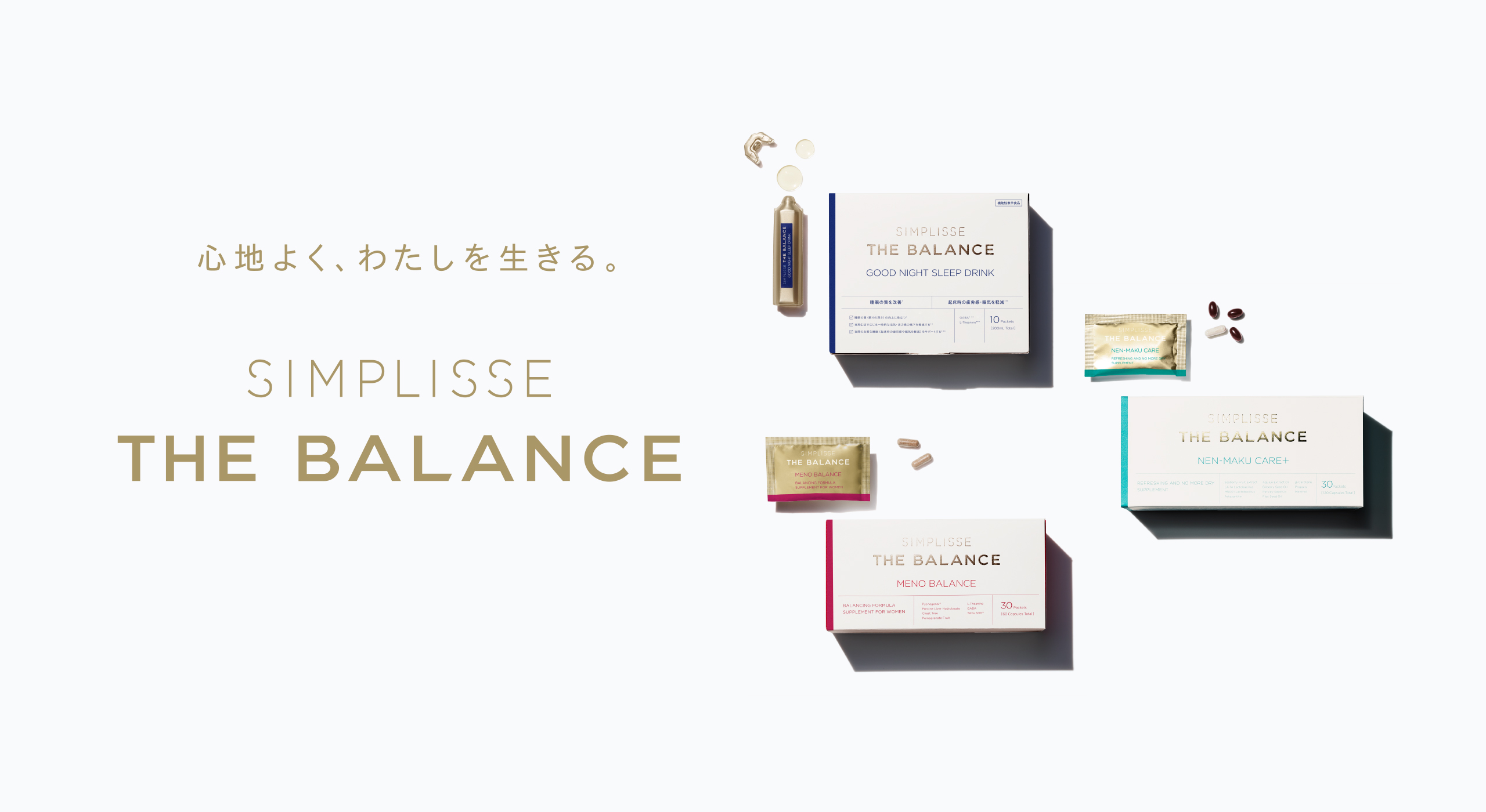 HOME SIMPLISSE THE BALANCE PRODUCT SIMPLISSE THE BALANCELINEUP MENO BALANCE メノバランス 初回50%OFF 通常価格 税込9,500円 税込4,750円 2回目以降 税込8,075円(15%OFF) 定期便はこちら 3回以上のお受け取りが条件となる商品です セット価格 通常価格 税込28,500円 税込25,500円(1箱あたり 8,500円) 通常購入はこちら 単品価格 税込9,500円 通常購入はこちら NEN-MAKU CARE+ ネンマク ケア プラス 初回50%OFF 通常価格 税込10,530円 税込5,265円 2回目以降 税込8,951円(15%OFF) 定期便はこちら お届け回数の制限はございません セット価格 税込21,060円(1箱あたり 10,530円) 通常購入はこちら 単品価格 税込10,530円 通常購入はこちら GOOD NIGHT SLEEP DRINK グッドナイト スリープ ドリンク 初回50%OFF 通常価格 税込9,600円 税込4,800円(1箱あたり 2,400円) 2回目以降 税込8,160円(15%OFF) 定期便はこちら 3回以上のお受け取りが条件となる商品です セット価格 通常価格 税込14,400円 税込12,600円(1箱あたり 4,200円) 通常購入はこちら セット価格 通常価格 税込9,600円 税込8,600円(1箱あたり 4,300円) 通常購入はこちら 単品価格 税込4,800円 通常購入はこちら THE BALANCE SET バランスセット セット価格 通常価格 税込14,300円 税込12,800円 通常購入はこちら HOME SIMPLISSE THE BALANCE