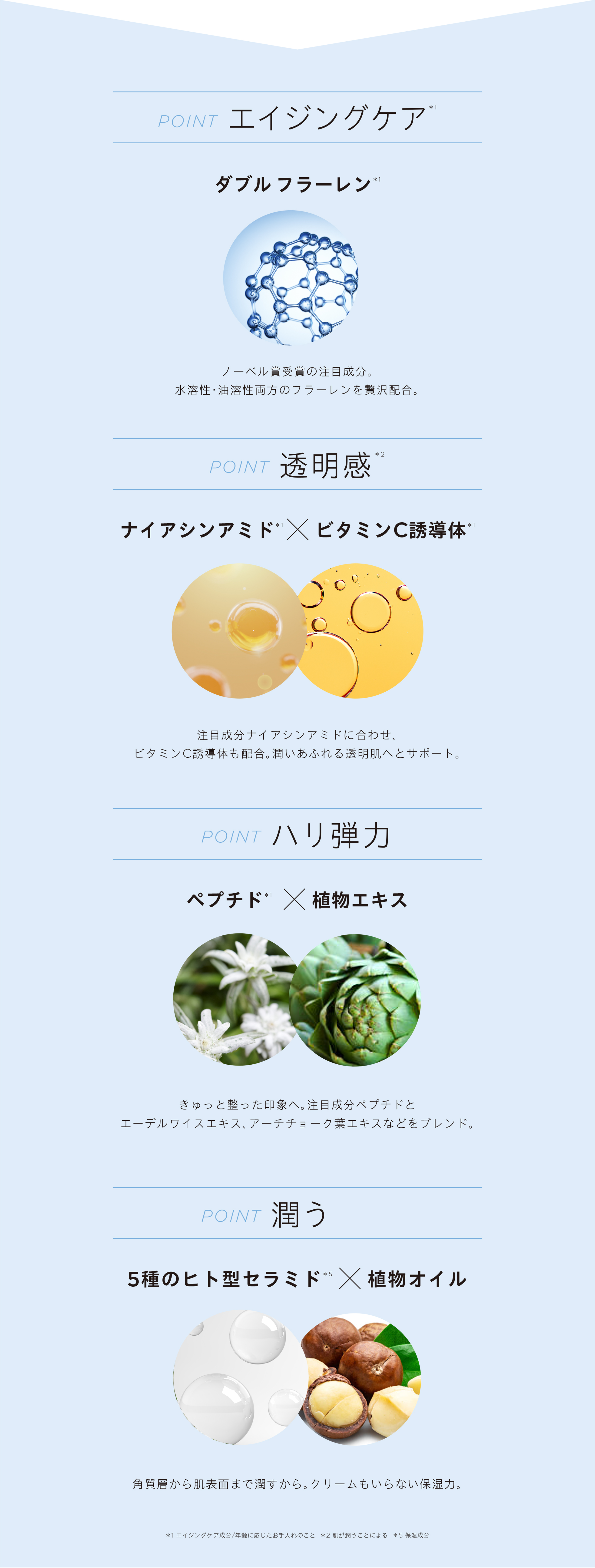「自然の力」と「科学の力」の両方から肌へ本当に届けたい信頼できる成分たちを厳選しました。